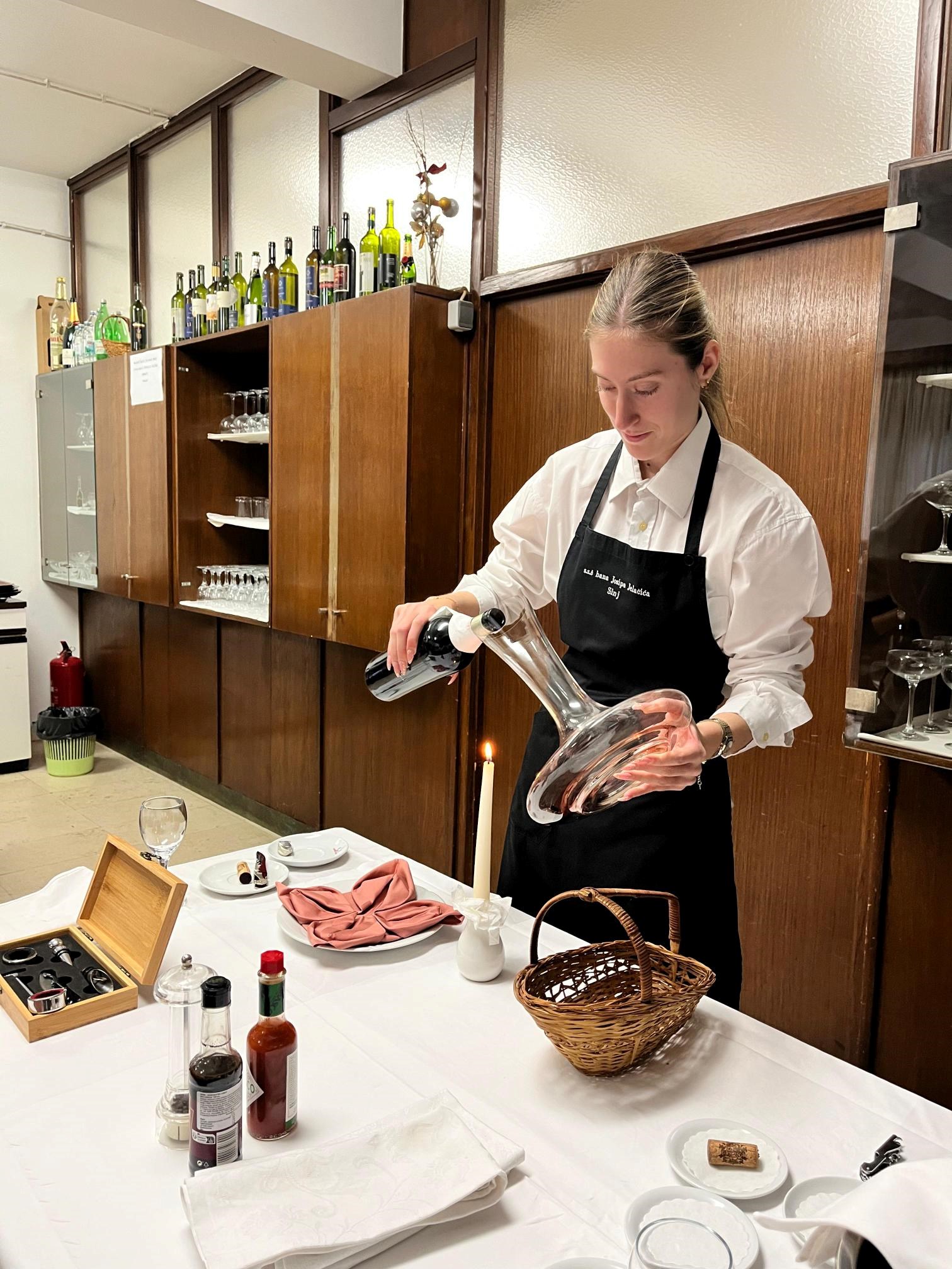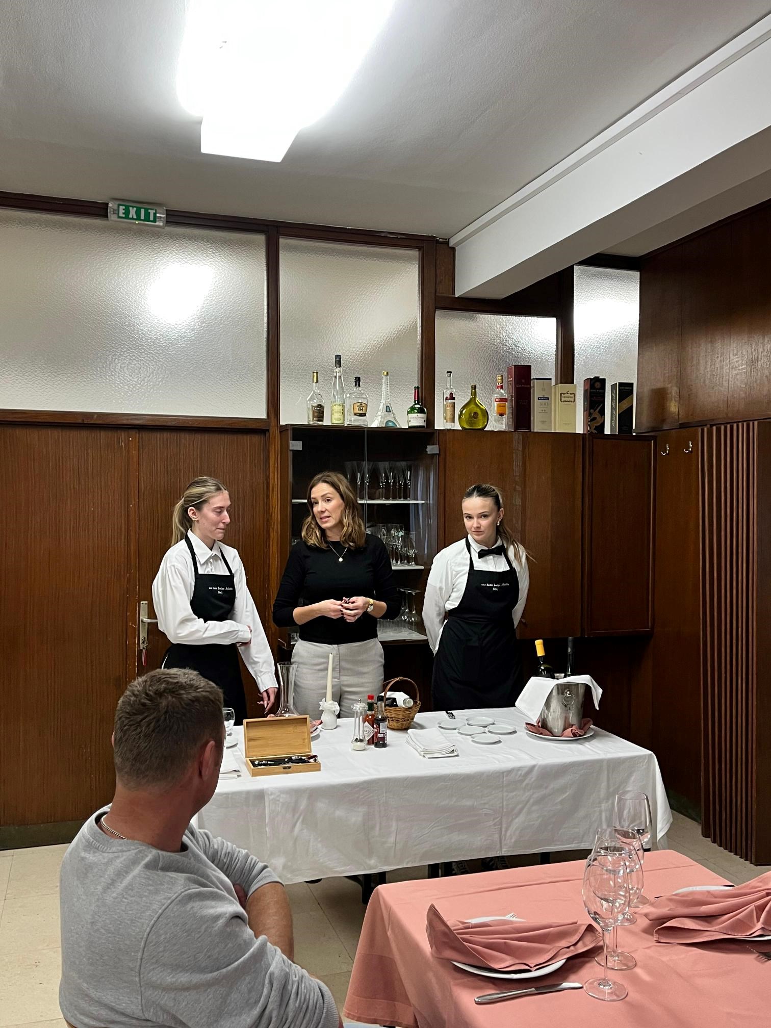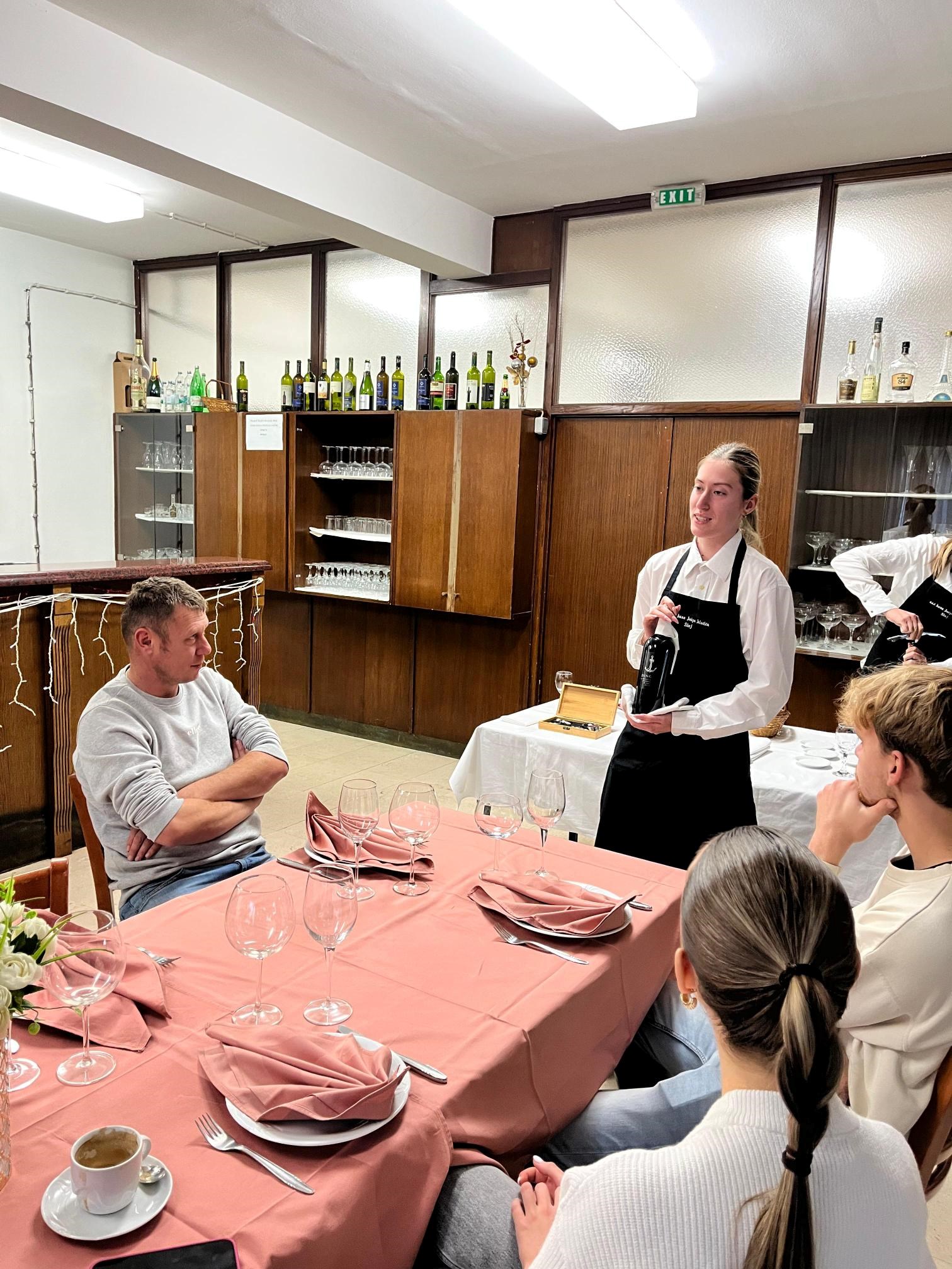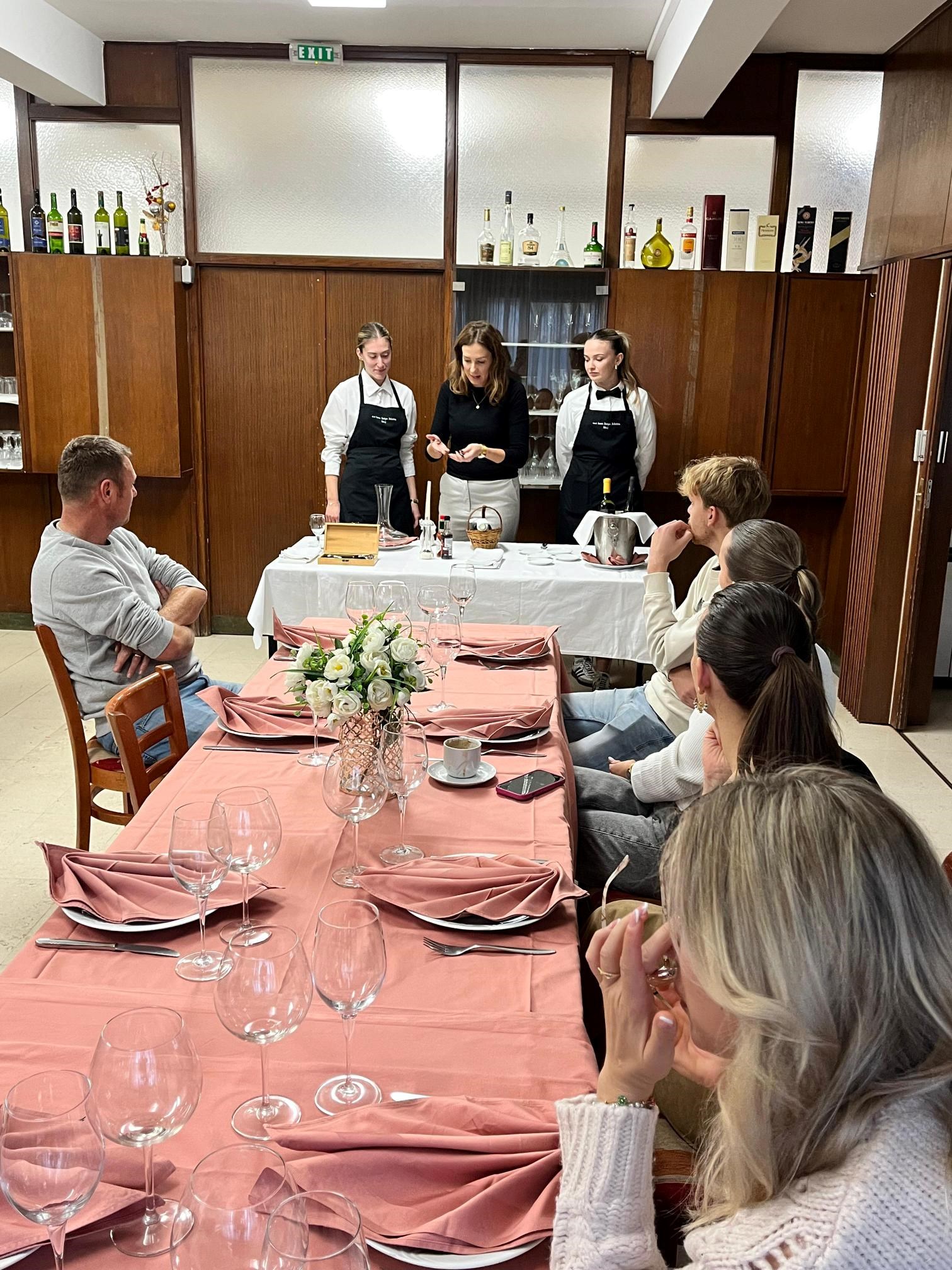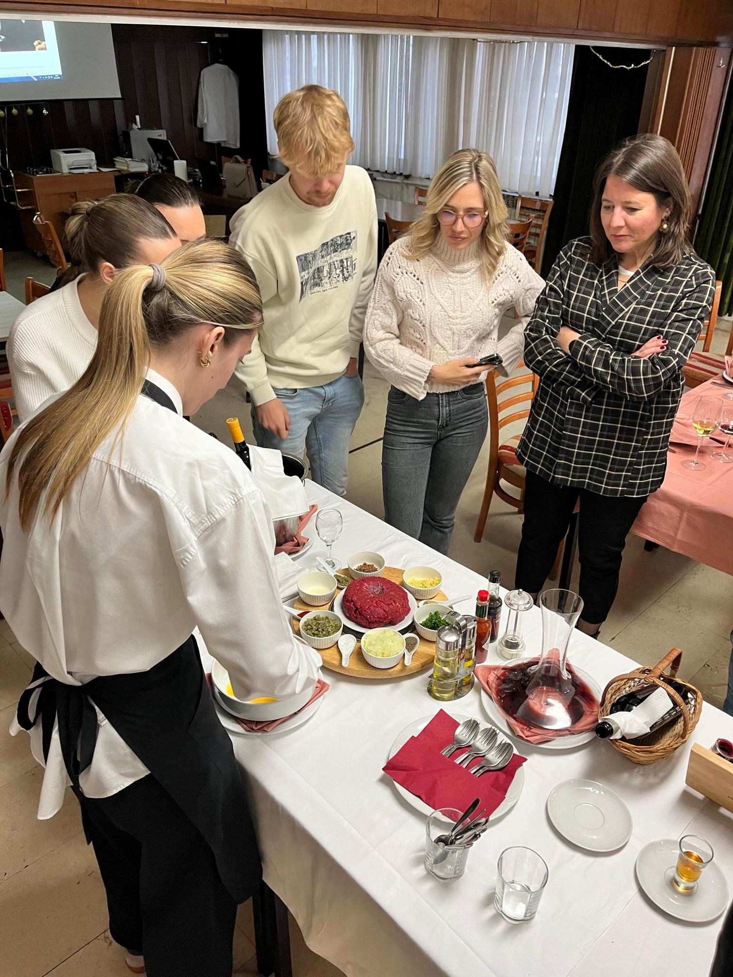 Nakon teorijskog dijela uslijedila je vođena degustacija dvaju vina uz pripadajuća jela. Poseban naglasak bio je na tartar bifteku, koji su na licu mjesta pripremile učenice Srednje strukovne škole bana Josipa Jelačića. Time su studenti dobili vrijednu priliku vidjeti praktičnu kulinarsku izvedbu i shvatiti važnost svježine, tehnike i prezentacije u profesionalnom uparivanju hrane i vina.