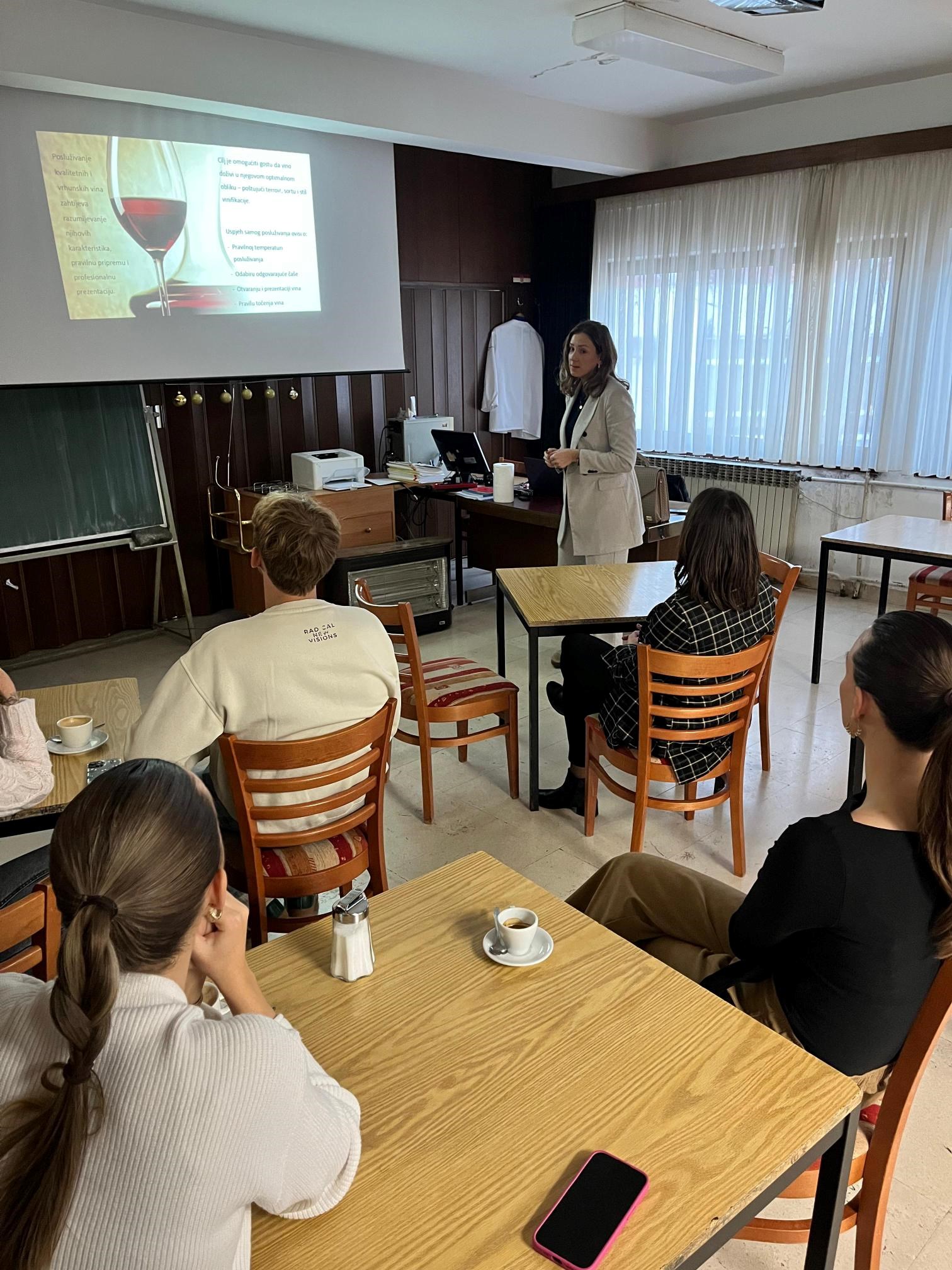 Prvi dio programa obuhvatio je stručno predavanje o principima i metodologiji pravilnog sljubljivanja vina i hrane, tijekom kojeg su studenti stekli uvid u profesionalne kriterije uparivanja aroma, tekstura i intenziteta okusa.